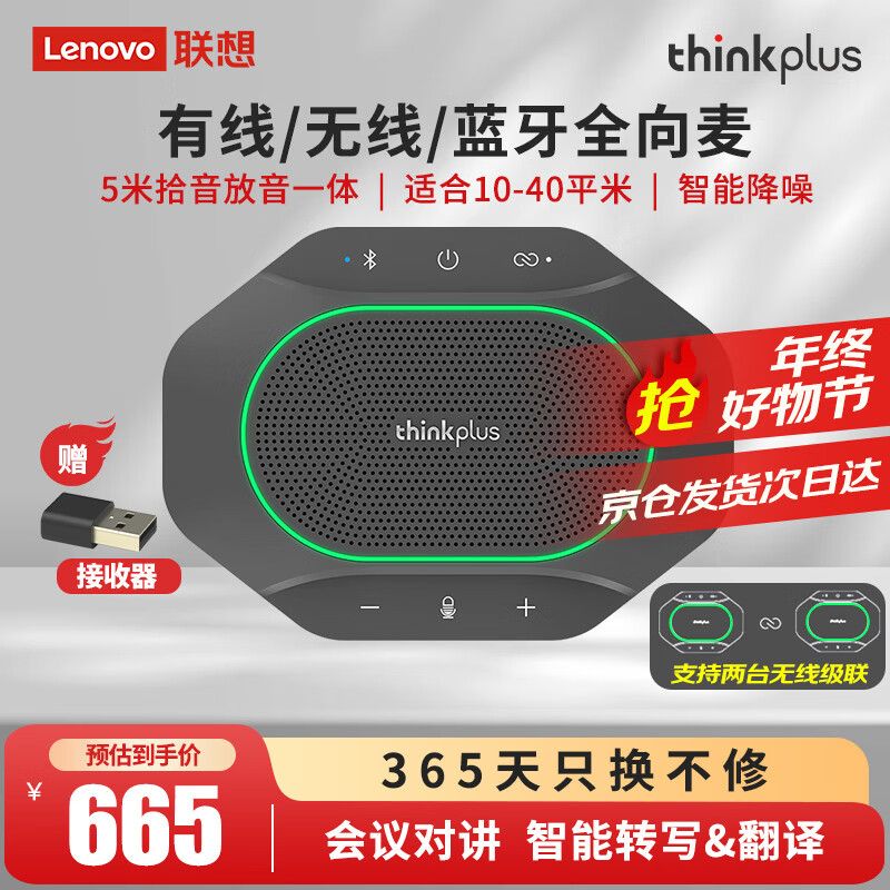 联想thinkplus视频会议全向麦克风免驱蓝牙降噪无线桌面扬声器5米360°拾音适用10~40㎡支持组队级联MK-MC600价格:699.00元!