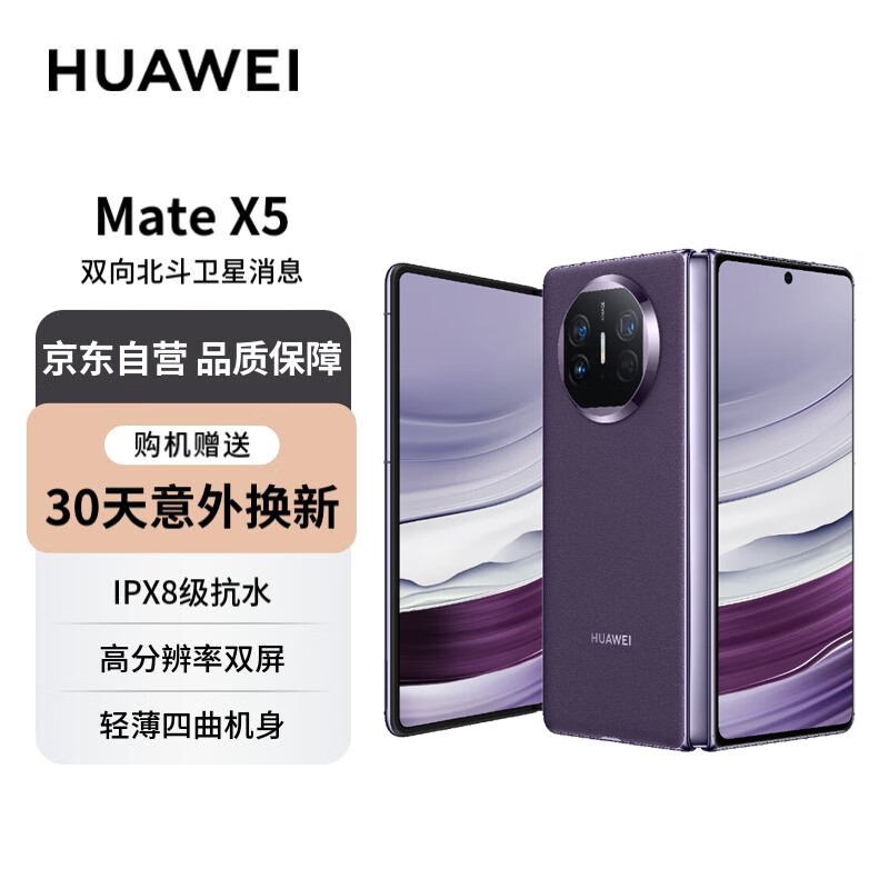 华为 Mate X5 折叠屏手机 16GB 512GB 幻影紫【赠服务】价格:13499.00元!