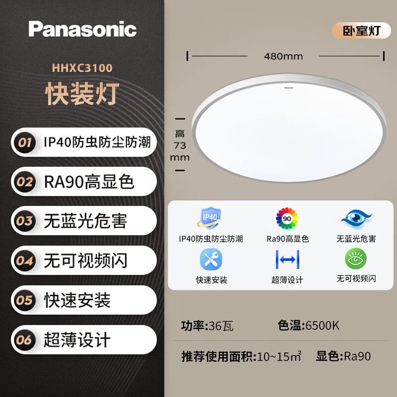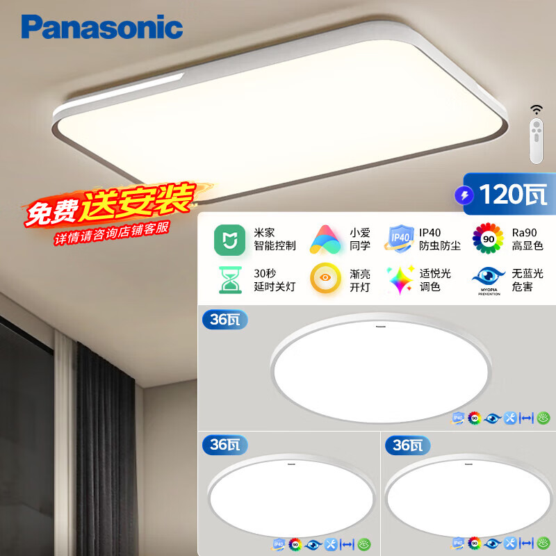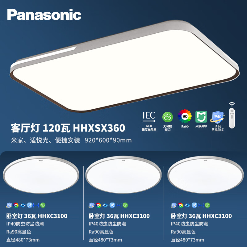 松下(Panasonic)吸顶灯led现代简约灯具防虫防尘快装灯三室一厅套装价格:2249.00元!