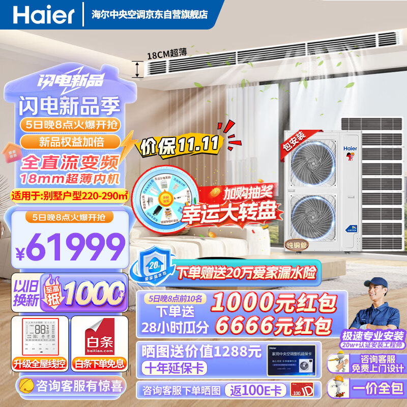 海尔(Haier)中央空调一拖九风管机12匹小多联一级能效全直流变频嵌入式RFC335MXS-A价格:61999.00元!
