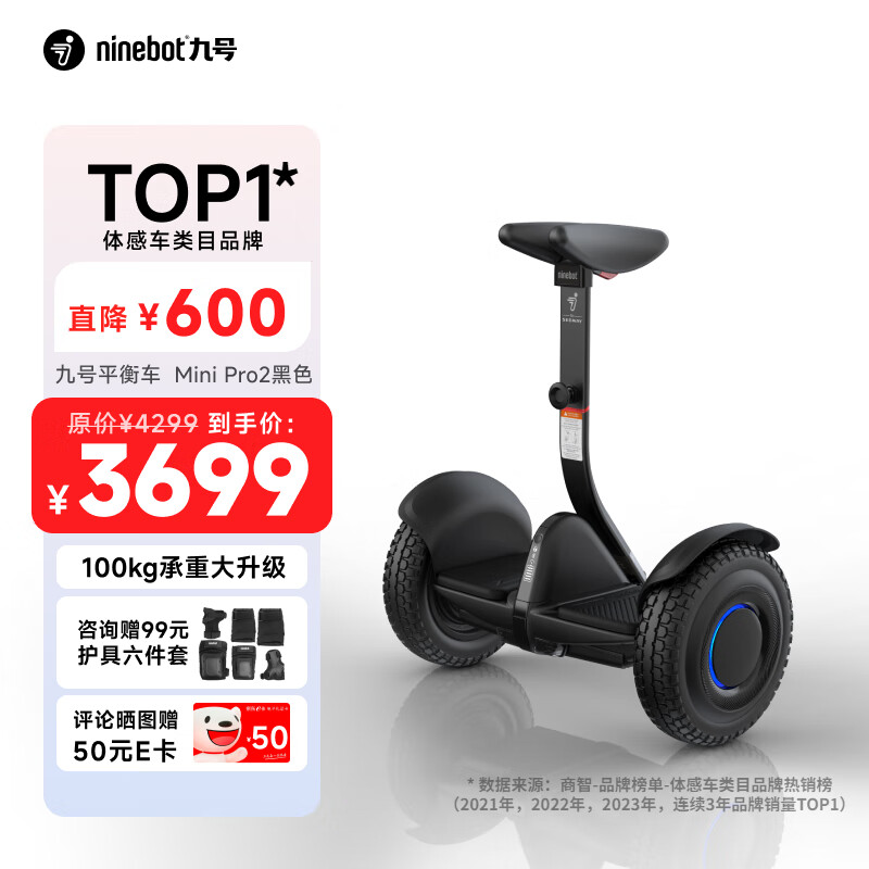 九号(Ninebot)miniPRO2黑色平衡车长续航智能平衡车电动成人腿控车平行车体感车价格:3599.00元!