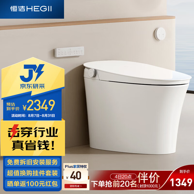 恒洁(HEGII)智能马桶Qs33 内置水箱无水压限制泵冲智能坐便器HCE885A01-305价格:2349.00元!
