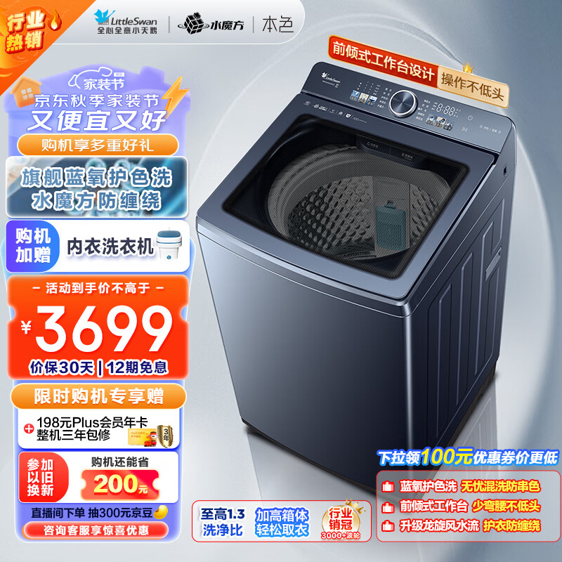 小天鹅(LittleSwan)波轮洗衣机全自动 本色蓝氧【TBM100M093DZ】水魔方龙旋风 去渍护色洗 纳米银除菌 炫彩大屏10公斤价格:3699.00元!