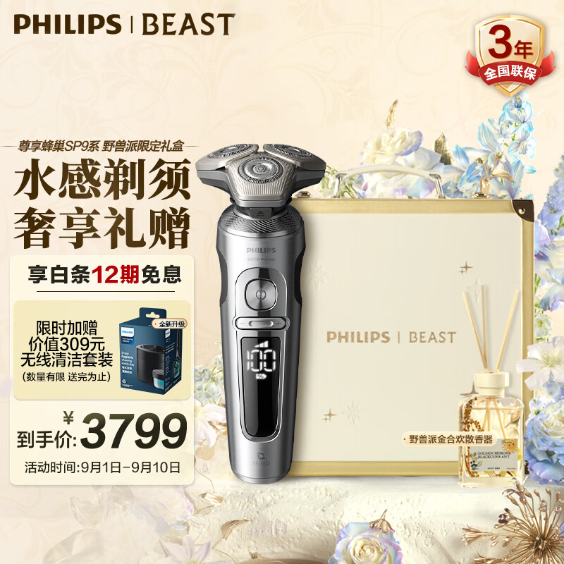 飞利浦(PHILIPS)电动剃须刀蜂巢奢享9系野兽派定制永耀礼盒 SkinIQ科技刮胡刀 送男友 送老公生日礼物价格:3799.00元!