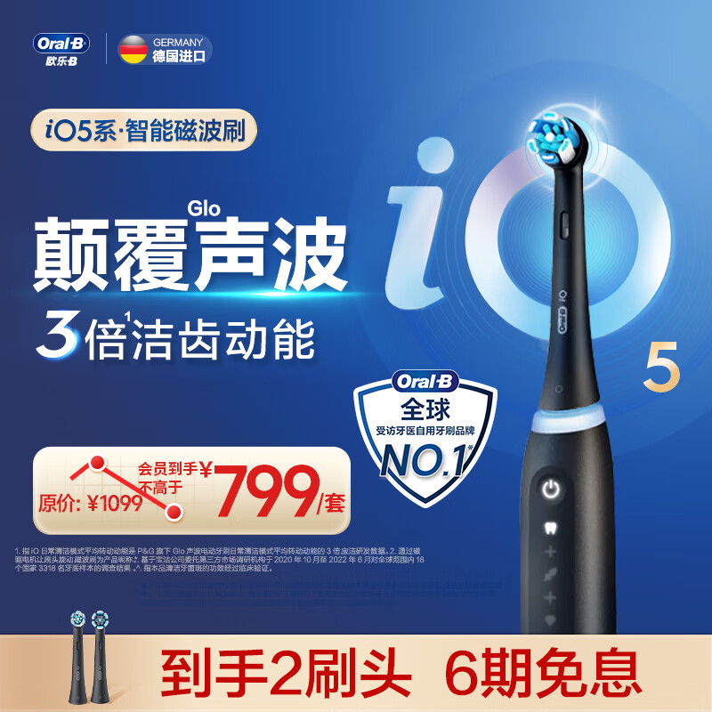 欧乐B成人电动牙刷iO5智能磁波刷iO系列圆头微震科技深度清洁智能护龈送男友送女友教师节中秋节礼物价格:799.00元!