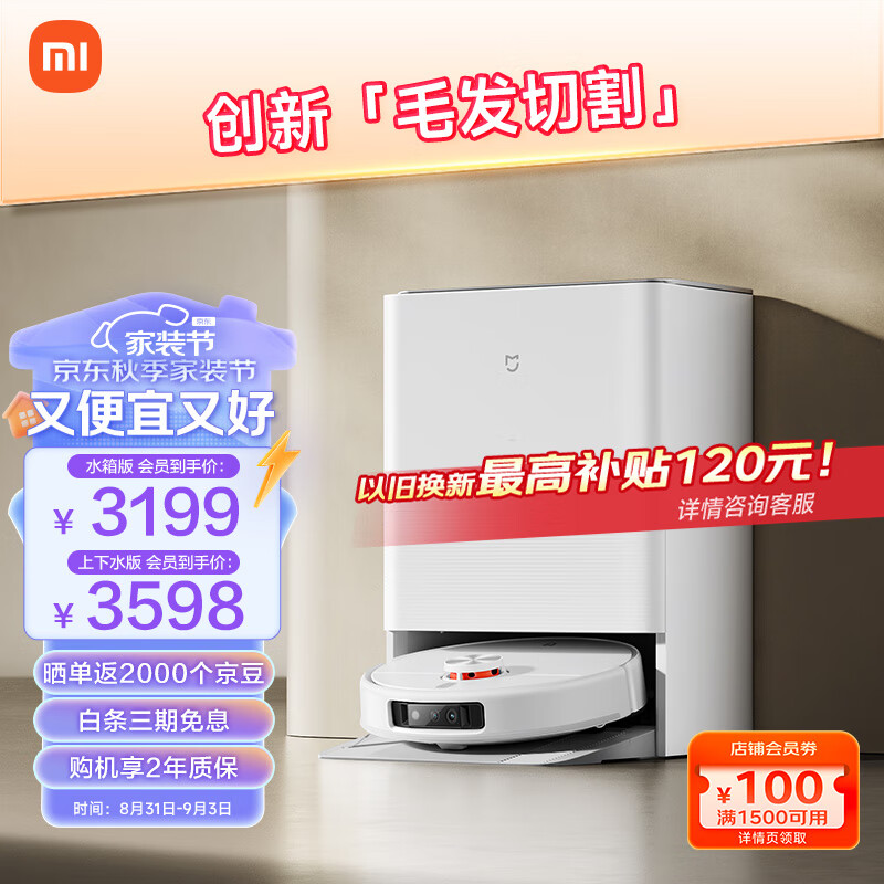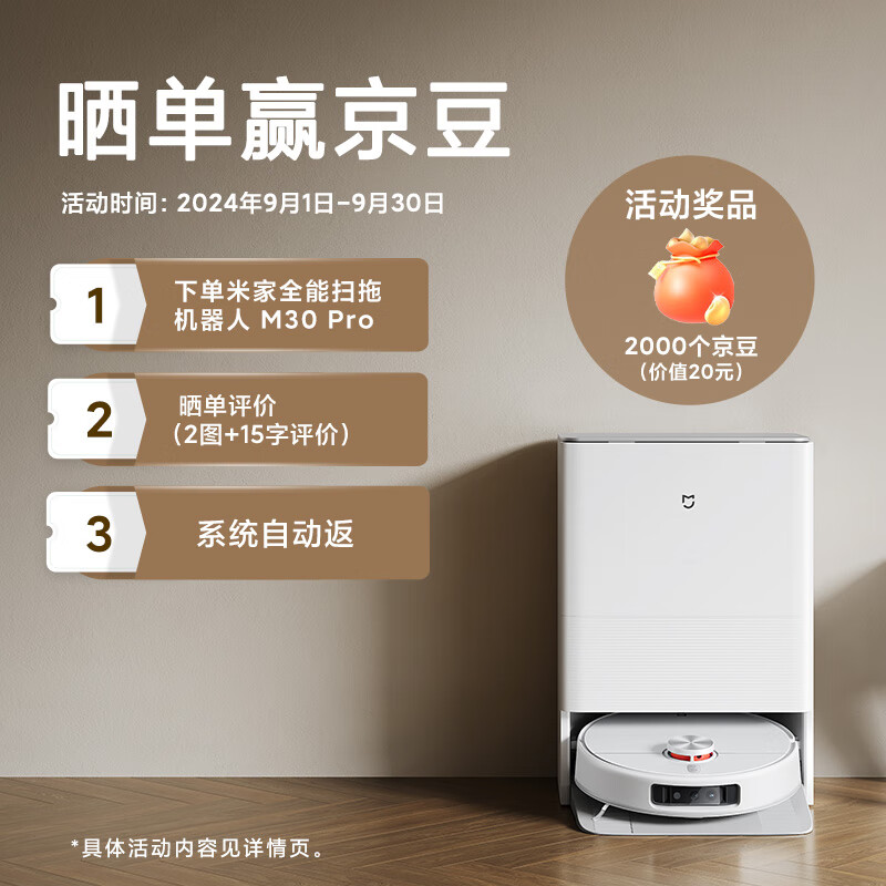 米家小米全能扫拖机器人M30Pro扫拖一体自动清洗扫地机器人洗地机基站毛发切割防缠绕价格:3299.00元!