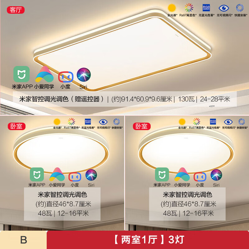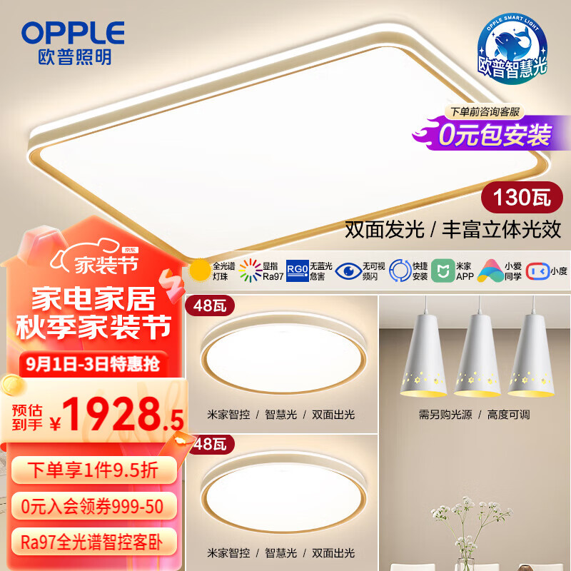 欧普(OPPLE)护眼全光谱吸顶灯客厅灯智能LED照明简约现代大气灯具套餐3智慧光价格:2030.00元!