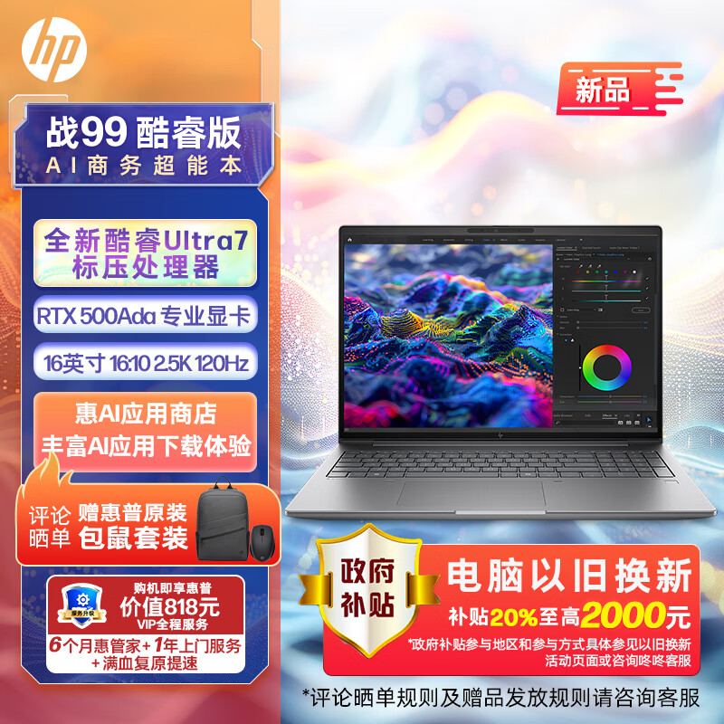 惠普(HP)战99 24款酷睿标压高性能笔记本AI电脑工作站 16英寸Ultra7 155H 32G 1TSSD RTX500Ada 2.5K屏价格:9999.00元!