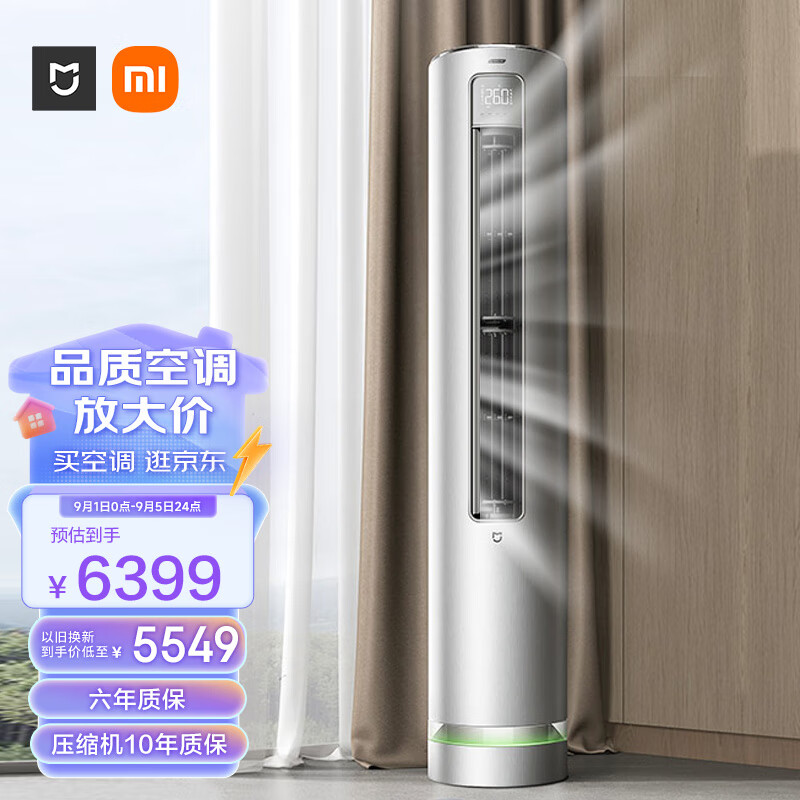 小米3匹 新风空调 新一级能效 变频冷暖 智能互联 客厅圆柱空调立式柜机 米家 KFR-72LW/F2A1价格:6399.00元!