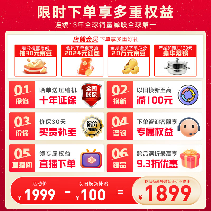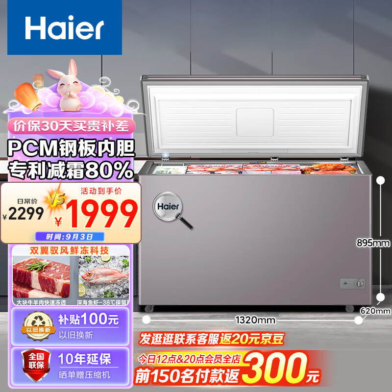 海尔368升一级能效低霜卧式商用家用冰柜大容量冷藏柜冷冻柜冰柜家用大冷柜BC/BD-368GHPCD以旧换新价格:1999.00元!