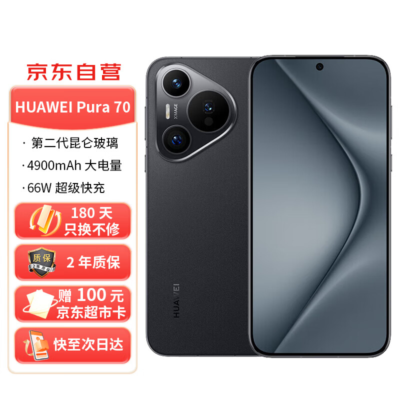 华为(HUAWEI)Pura 70 羽砂黑 12GB+1TB 超高速风驰闪拍 第二代昆仑玻璃 双超级快充 华为P70智能手机价格:6199.00元!