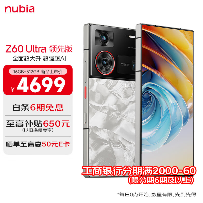 努比亚(nubia)努比亚Z60 Ultra版 屏下摄像16GB+512GB冰溪银 第三代骁龙8版 三主摄 5G手机游戏拍照价格:4699.00元!