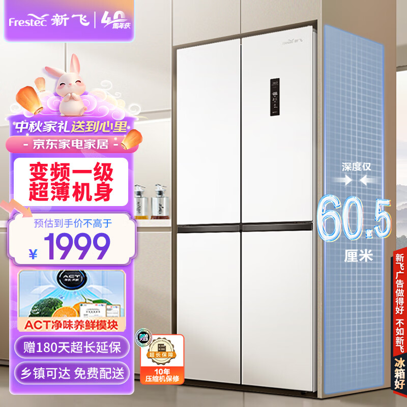新飞(Frestec)418升净味超薄对开双开四开多门风冷无霜电冰箱变频一级能效十字变温 BCD-418WK8CT价格:1999.00元!