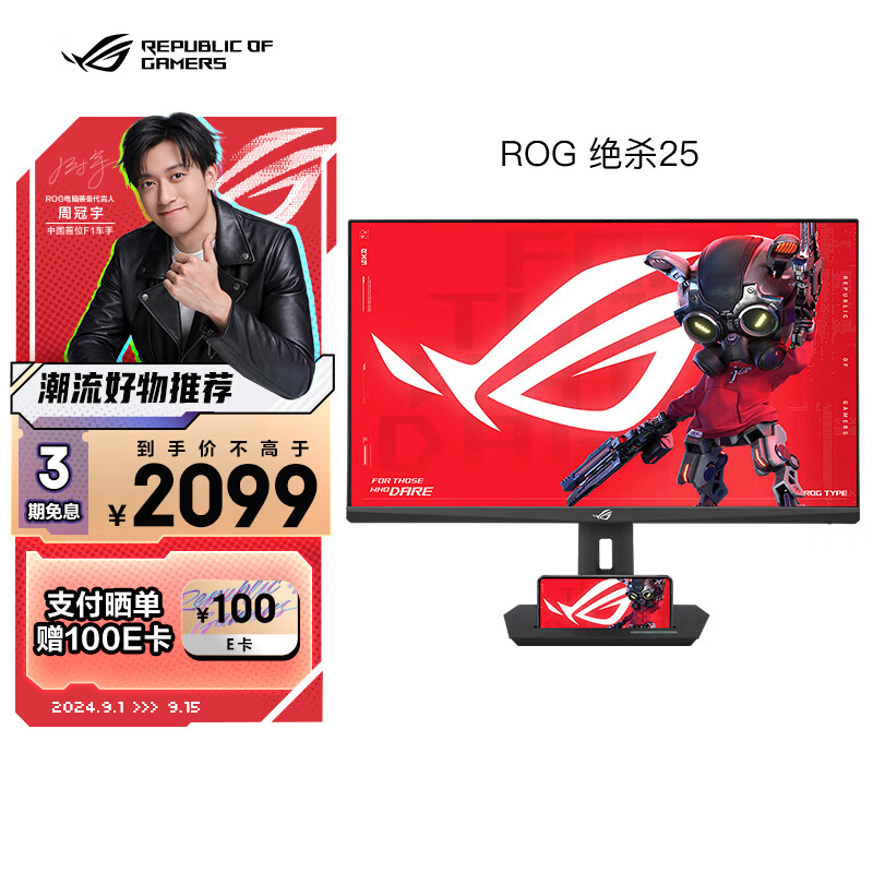 华硕ROG XG259CMS绝杀25 24.5英寸240Hz显示器超频310Hz HDR400旋转升降G-sync同步无撕裂 1ms灰阶响应价格:2099.00元!