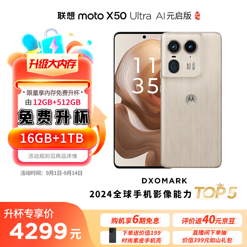 摩托罗拉 联想moto X50 Ultra 100倍潜望超级变焦 一体化机身 5G手机 AI元启版 16GB+1TB 香柏木价格:4299.00元!