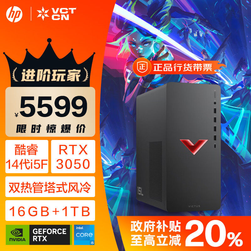 惠普(HP)暗影精灵10台式电脑 游戏台式机主机 设计师电脑 酷睿14代i5 RTX3050 8G独显 16G 1TBSSD价格:5599.00元!