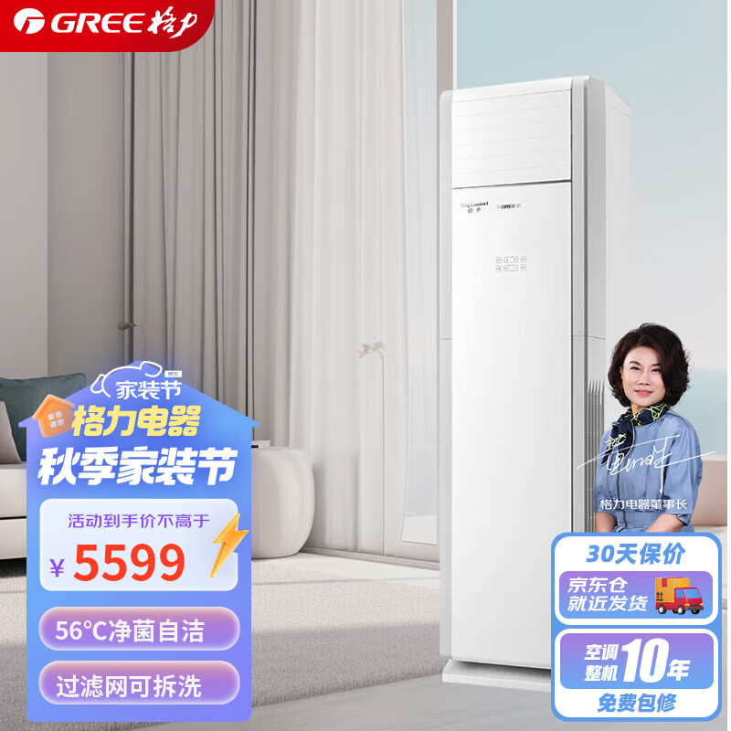 格力(GREE)2匹 京爽 新三级能效 变频冷暖 高温自清洁 立柜式空调柜机 KFR-50LW/(50533)FNhAs-B3价格:5599.00元!