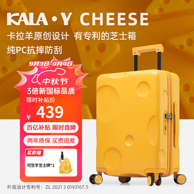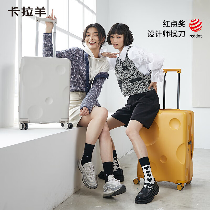 卡拉羊芝士箱防刮纯PC行李箱24英寸大容量女拉杆箱男旅行箱8109芝士黄价格:619.00元!