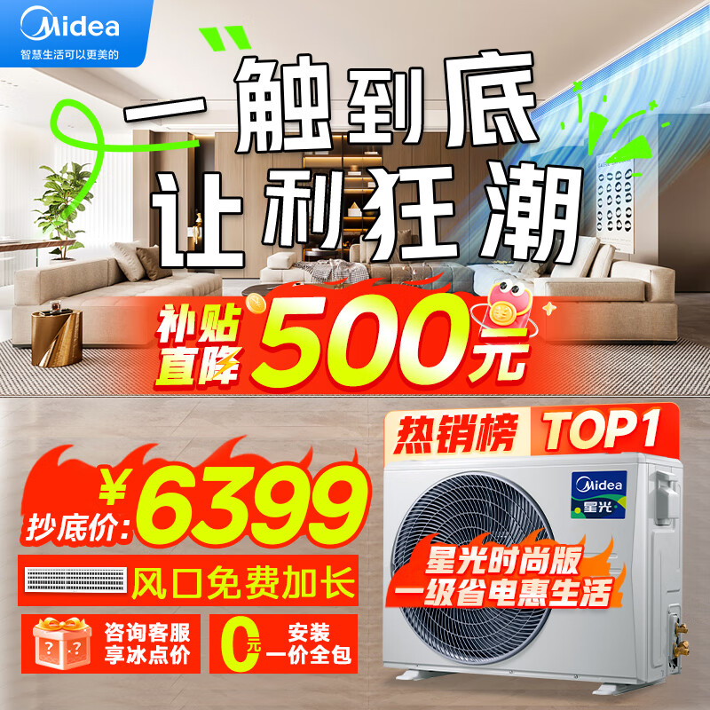 美的(Midea)中央空调风管机一拖一3匹一级能效客厅家用嵌入式隐形嵌系列星光时尚版KFR-72T2W/BN8-XG(1)Ⅲ价格:6399.00元!