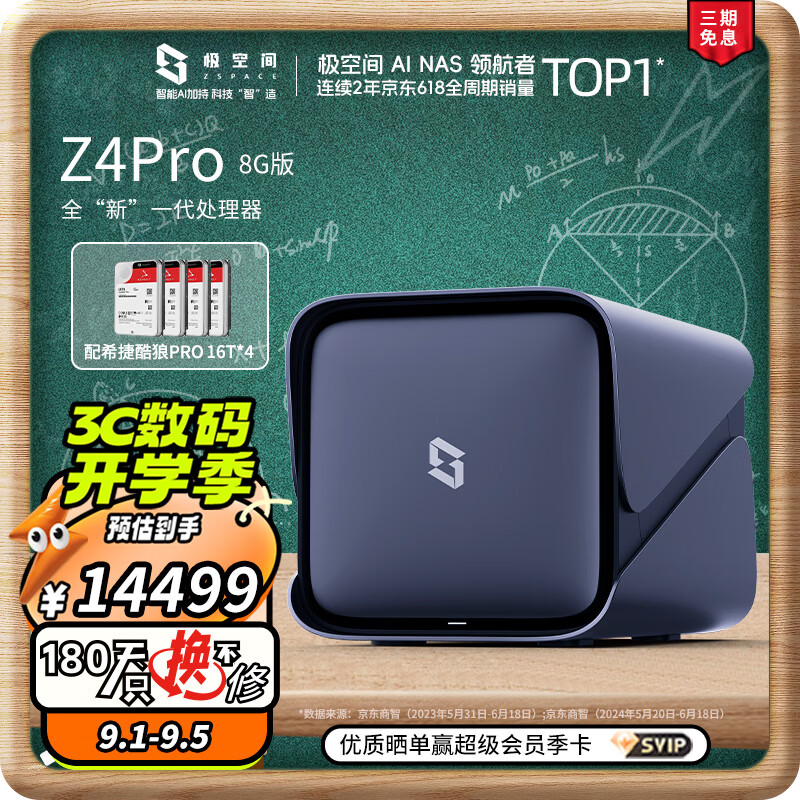 极空间私有云64TB Z4Pro 8G版四盘位Nas网络存储家庭个人云相册备份文件同步手机平板扩容价格:16799.00元!