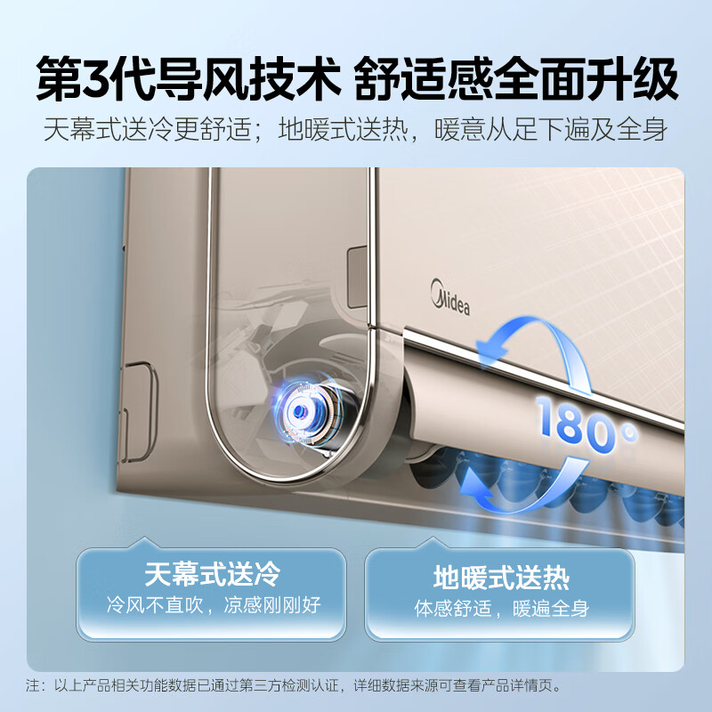 给大家分享下!实实在在的说这款美的KFR-50G/N8MXA1挺好的,说真的这个空调真的很给力,而且无风感好舒服,机关对着床头装的,只要开无风感,真的整个空间充满微风的感觉,就很舒适,推荐一下,而且美的的颜值还挺高的?