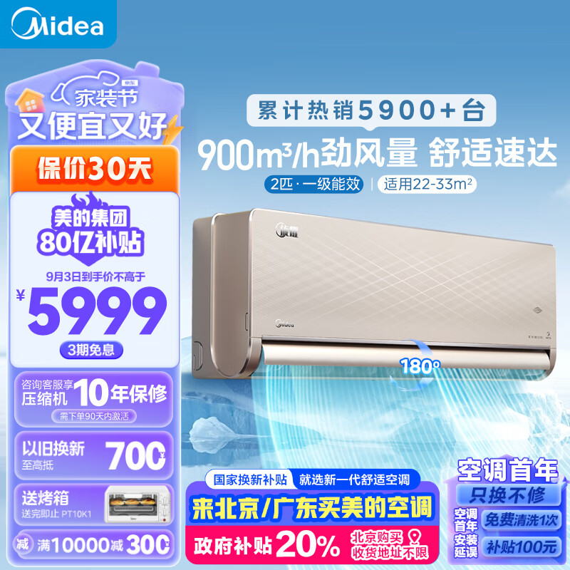 美的(Midea)空调 2匹旋耀 壁挂式空调 大风量客厅商铺挂机 一级能效空调 KFR-50GW/N8MXA1价格:5849.00元!