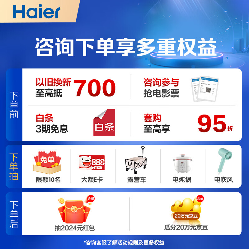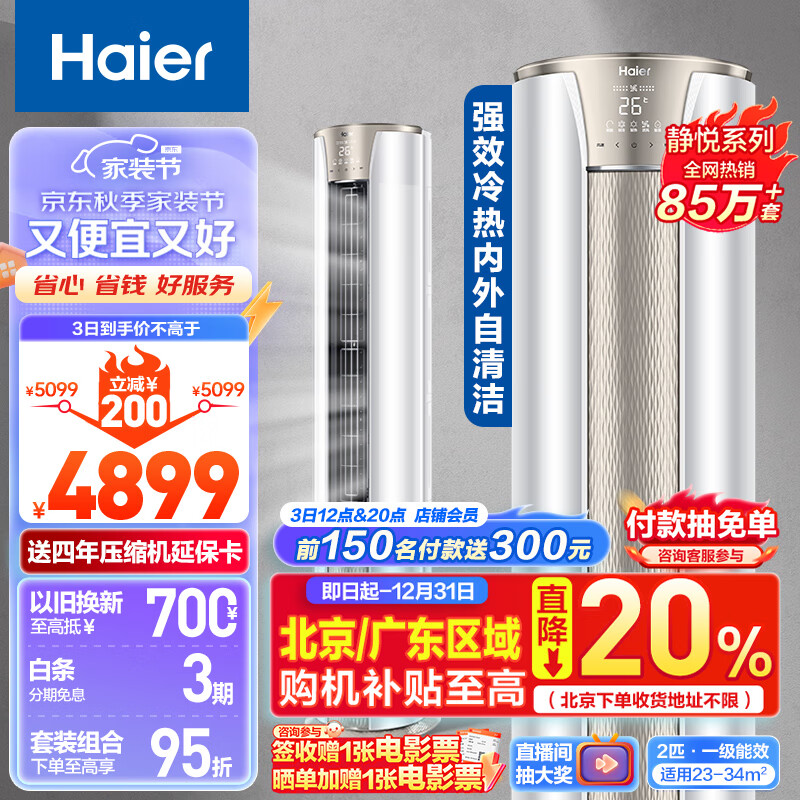 海尔(Haier)2匹 静悦 新一级变频冷暖 客厅圆柱空调立式柜机 京东小家智能 KFR-50LW/03KCA81U1 以旧换新价格:4899.00元!