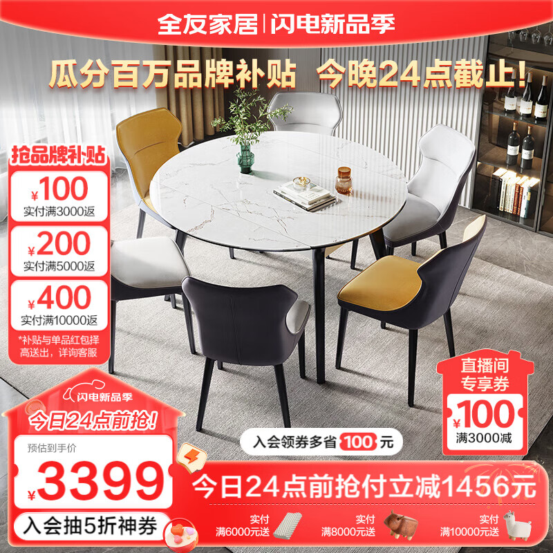 全友家居 岩板餐桌椅组合客餐厅家用轻奢风吃饭桌子一桌四椅子DW1059价格:4855.71元!
