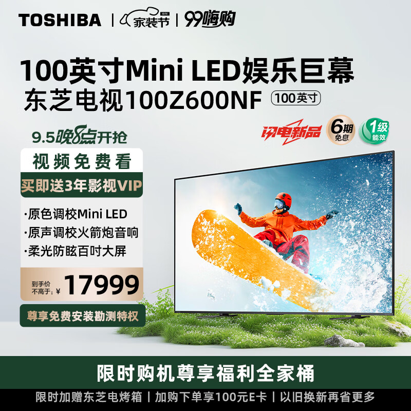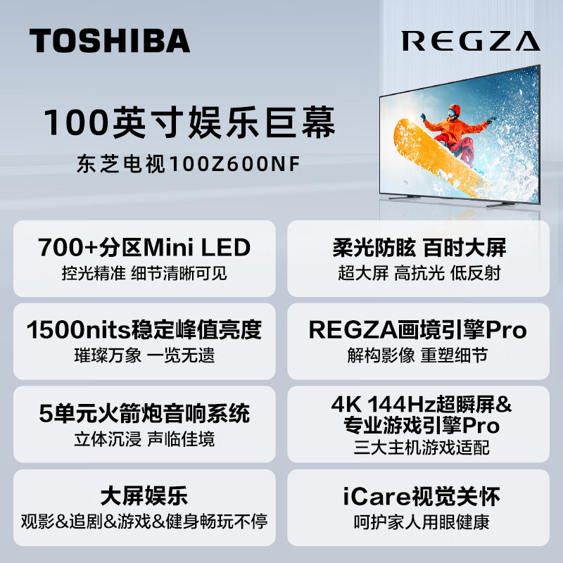 东芝电视100Z600NF 100英寸原色调校Mini LED 原声调校火箭炮音响 4K144Hz巨幕 液晶平板游戏电视机价格:17999.00元!