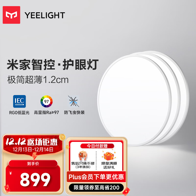 Yeelight易来 智能led吸顶灯 护眼灯超薄卧室吸顶灯 智能联动 灯具套餐D价格:949.00元!