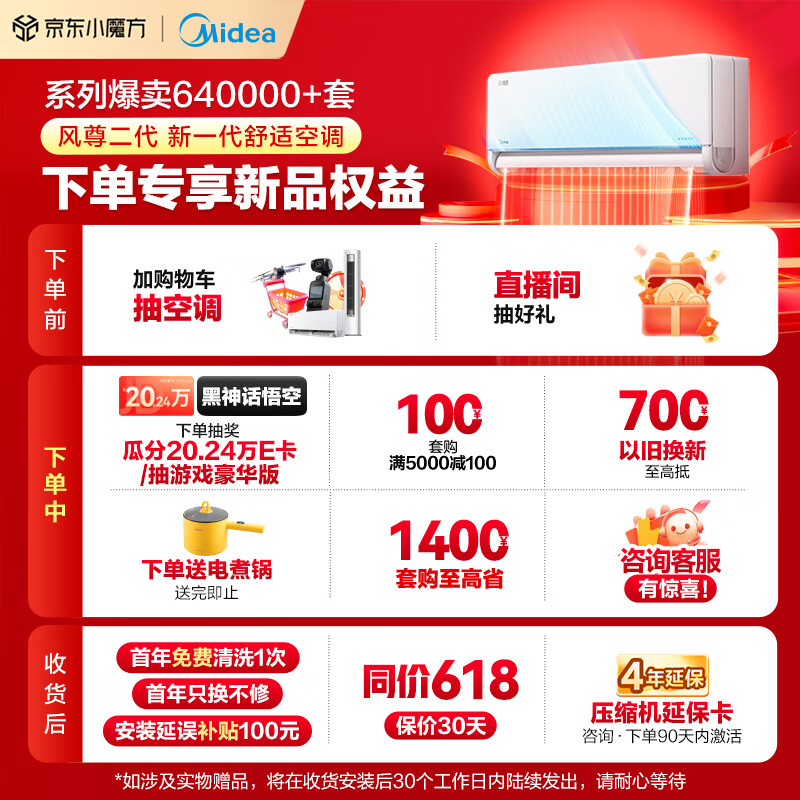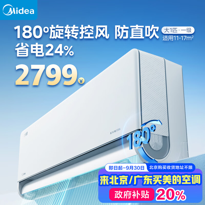 美的大1匹风尊二代新一代舒适空调新一级能效空调挂机变频冷暖60度高温制冷云朵系列KFR-26GW/N8MXC1Ⅱ价格:2799.00元!