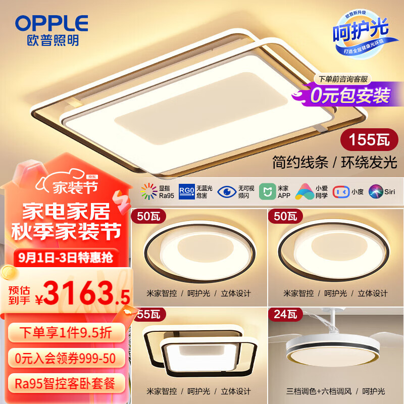 欧普(OPPLE)吸顶灯客厅大灯护眼智能LED照明灯具灯饰简约现代大气套餐1呵护光价格:3330.00元!