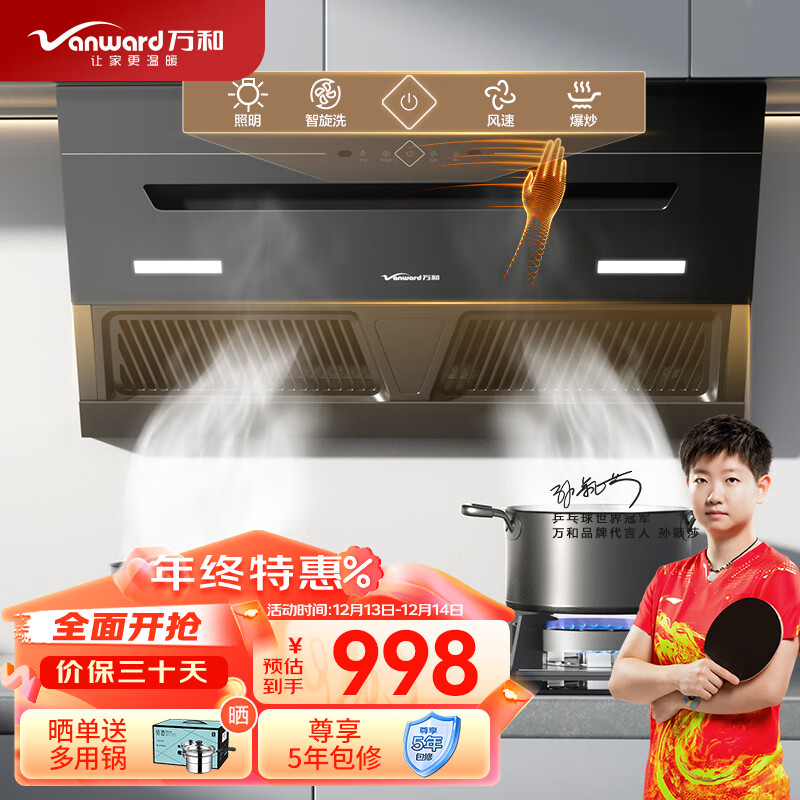 万和(Vanward)侧吸式油烟机 家用三腔抽油烟机 21风量 挥手智控 自动清洗 厨房排烟机 DJ628价格:999.00元!