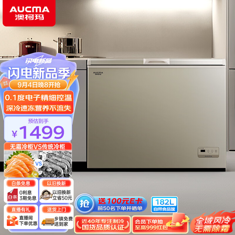 澳柯玛(AUCMA)182升风冷无霜冰柜家用商用单温冷藏柜冷冻柜母乳小冰柜商用小型冷柜冰箱BC/BD-182WD以旧换新价格:1489.00元!