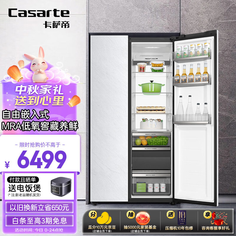卡萨帝(Casarte)600升原石冰极岩系列大容量对开门双开门家用嵌入式超大容量电冰箱一级能效BCD-600WGCSSM7WYU1价格:6499.00元!