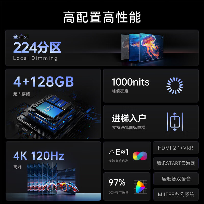 5、电视比我想象的要大,90寸的我家电梯刚刚合适,再大一点都进不去电梯,上墙效果实物比拍照要显大,清晰度也很好,感觉挺值的!没想到这个价钱可以买到这么好的电视!挺推荐的!