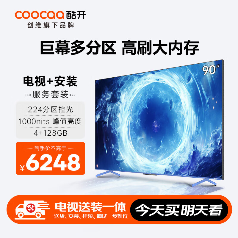 酷开【送装一体版】创维Max90 90英寸电视 224分区控光 1000nits峰值亮度 120Hz游戏智能电视机90P60 P价格:6248.00元!