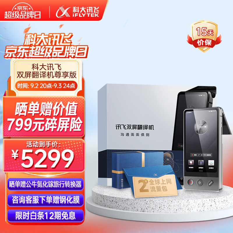 科大讯飞(iFLYTEK)双屏翻译机环球出行无忧尊享版 含国际流量 多语种离线翻译器 同声字幕 出国旅游口语实时翻译价格:5299.00元!
