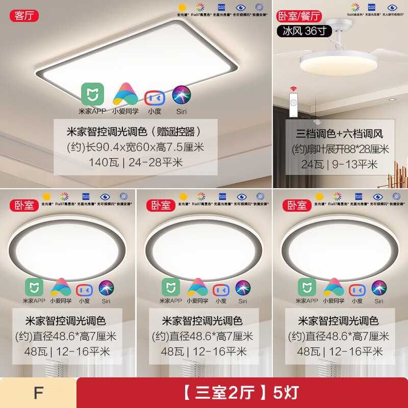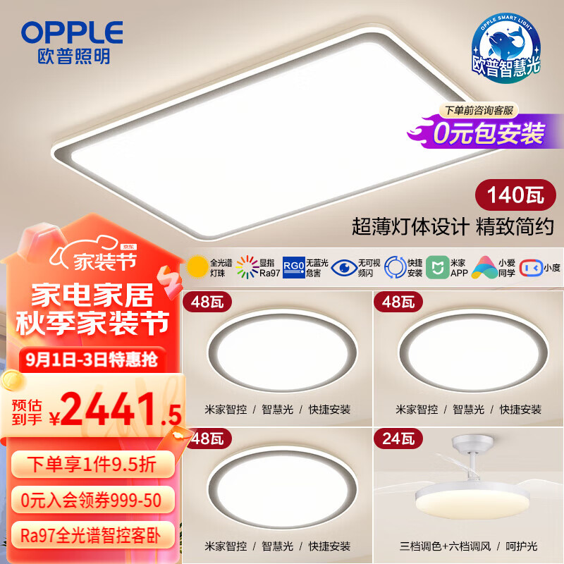 欧普(OPPLE)护眼全光谱吸顶灯客厅大灯智能LED照明简约现代卧室套餐6 智慧光价格:2570.00元!