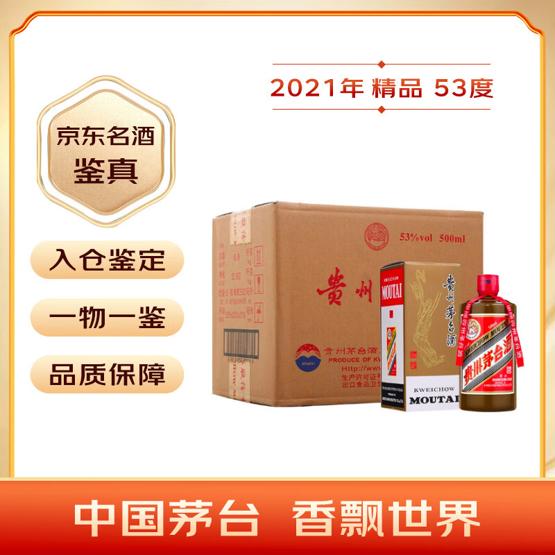 茅台(MOUTAI) 2021年 精品 酱香型白酒 53度 500ml*6 整箱装价格:21594.00元!