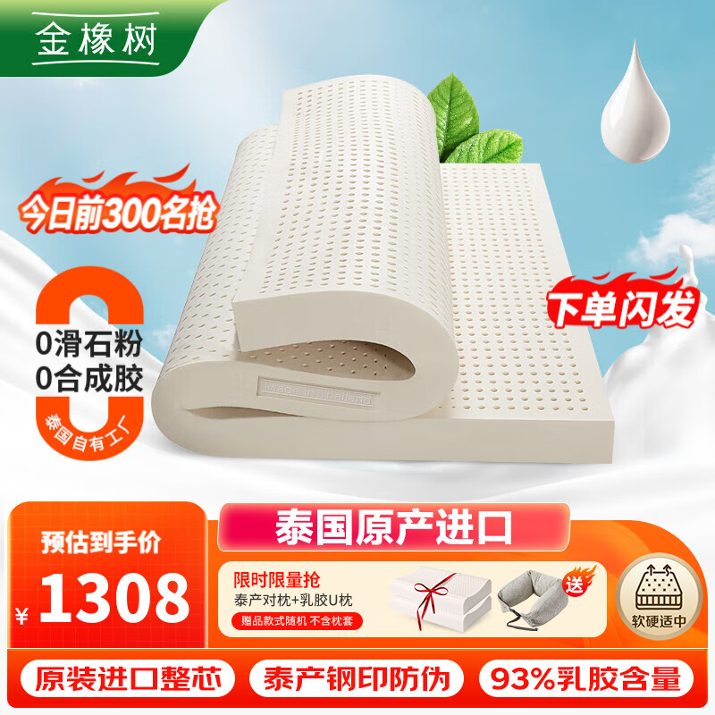 金橡树泰国原产整芯进口天然乳胶床垫双人床垫乳胶垫180*200*7.5cm 泰优价格:2998.00元!