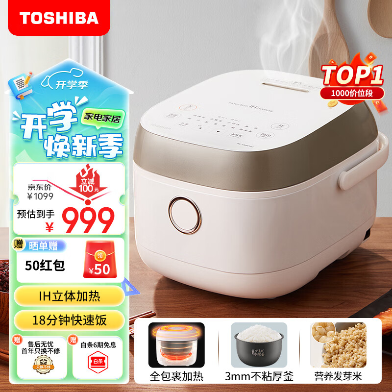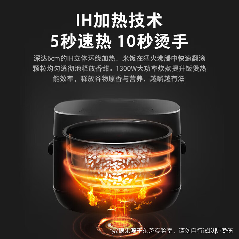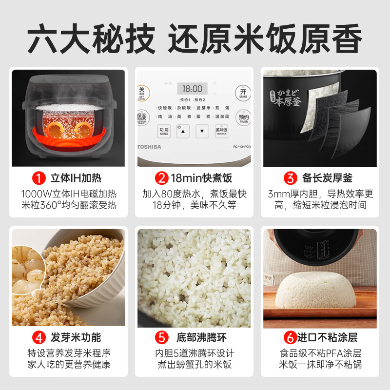 东芝(TOSHIBA)鲜电饭煲智能预约定时电饭锅IH加热快速饭煮饭锅美味杂粮饭蒸饭锅3L(2-5人家庭)RC-10HPC价格:999.00元!