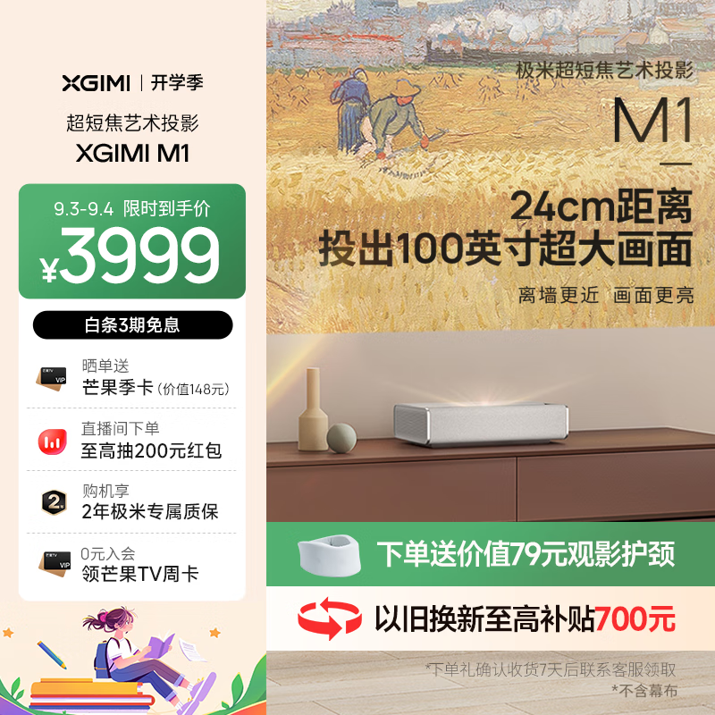 极米M1 超短焦艺术投影仪 投影仪家用(卧室推荐 贴墙投100英寸大屏 音画合一 防射眼 专属2年全保)价格:3999.00元!