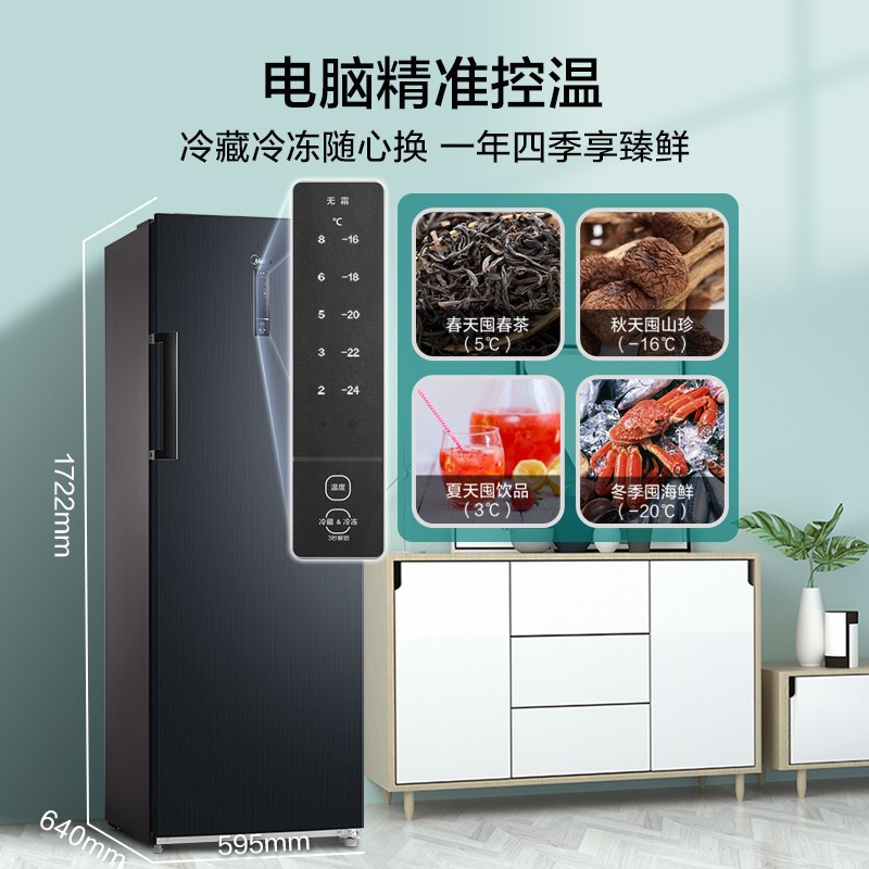 美的(Midea)240升 风冷无霜家用立式冰柜 电子控温冷藏冷冻转换抽屉式冰柜小型全冷冻冰箱 BD/BC-240WEA价格:2399.00元!