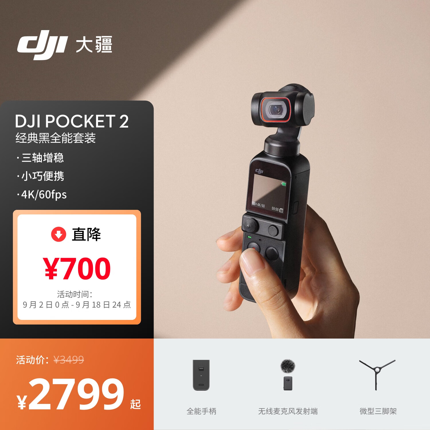 大疆 DJI Pocket 2 全能套装 灵眸口袋云台相机 小型户外防抖高清4K摄影机 vlog全景相机+128G内存卡价格:2893.90元!