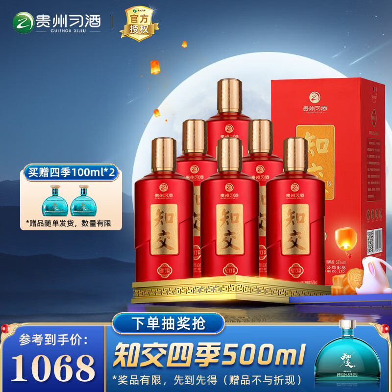 习酒知交【中秋礼品】 知行礼 酱香型白酒 53度 500ml*6 整箱装价格:1368.00元!