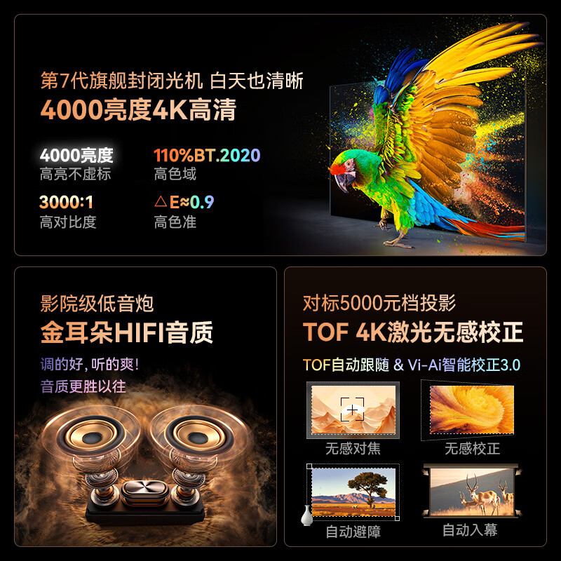 5、性价比的天花板,配置也是拉满的,高亮度,白天很清晰,自动对焦智能操作,对比了很多机器,这台价位合适配置高,果断下单不犹豫。音效堪比电影院了。