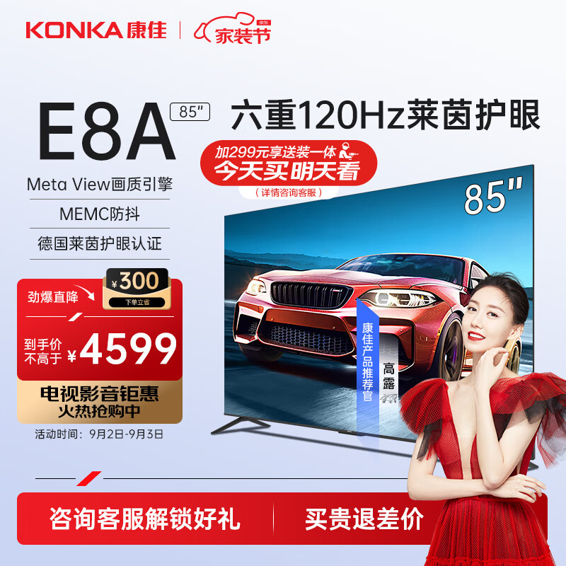 康佳电视 85E8A 85英寸 3+32G 120Hz MEMC护眼电视 4K超清屏 液晶平板电视机巨幕大屏以旧换新价格:4199.00元!