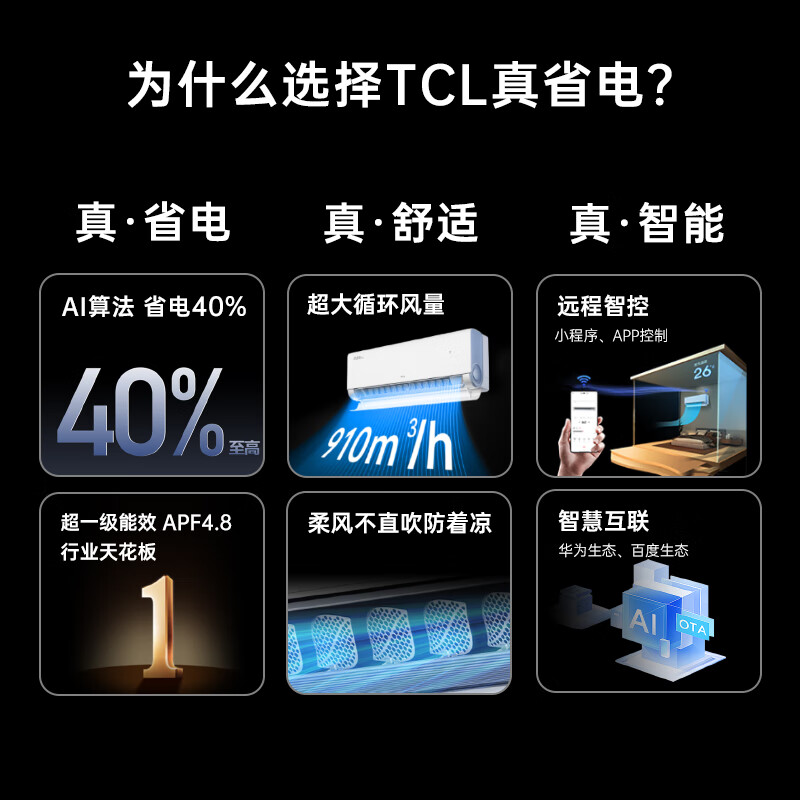 1、TCL的空调真是夏日里的清凉神器!不仅制冷迅速,静音效果更是出色,夜晚使用几乎无感。操作界面简洁明了,老人小孩都能轻松上手。而且,它的节能模式有效降低了能耗,环保又省钱。外观设计时尚大方,完美融入家居环境,提升了整体格调。非常满意,强烈推荐!