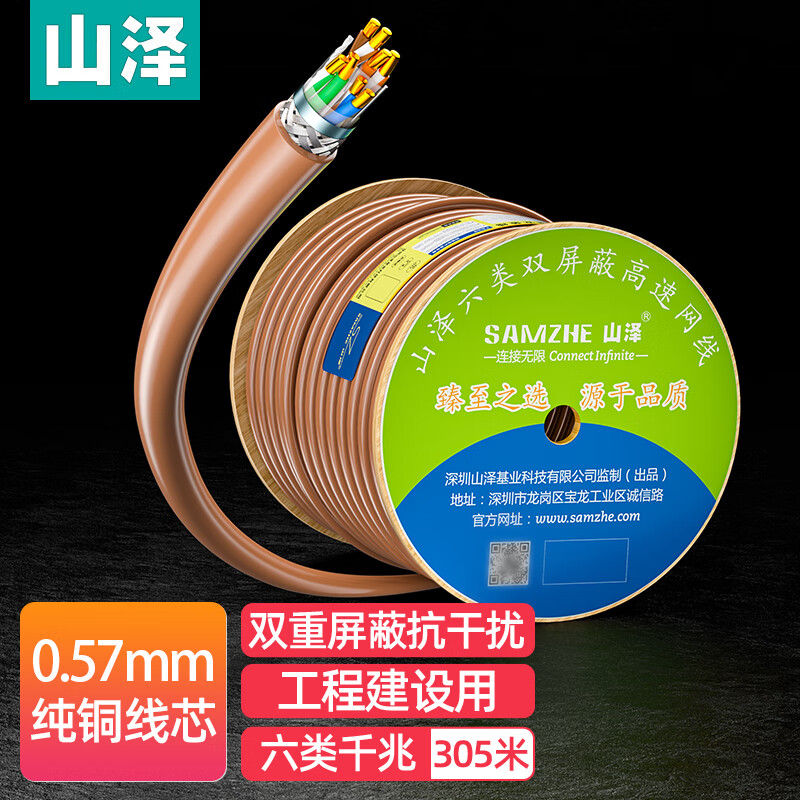 山泽 六类双屏蔽网线【商用/工程/家装版】智能 CAT6类千兆网线纯铜高速网线 棕色305米 SFTP-6305价格:1235.00元!